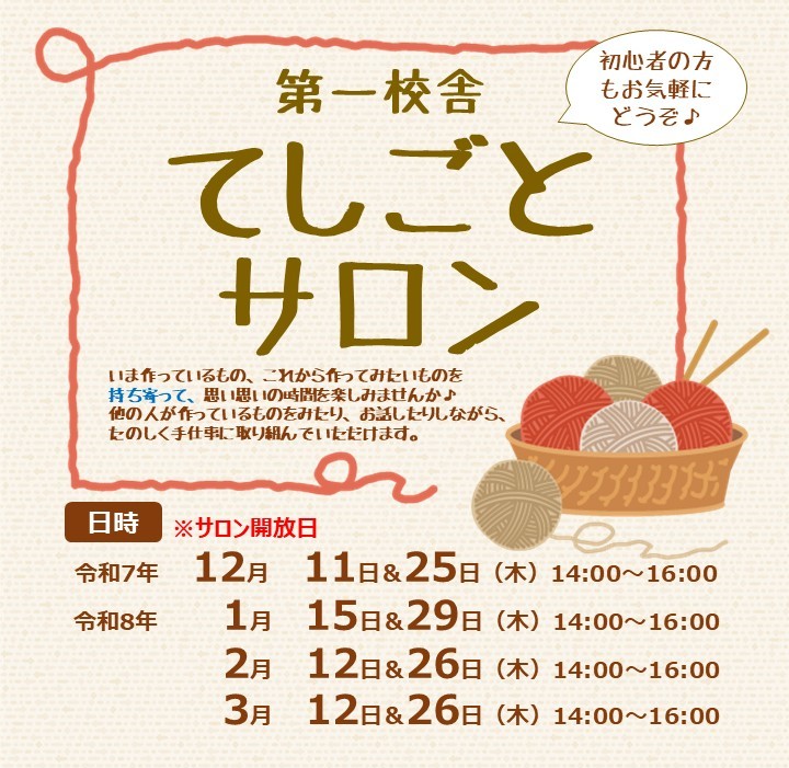 「てしごとサロン」にぜひあそびにきてください。